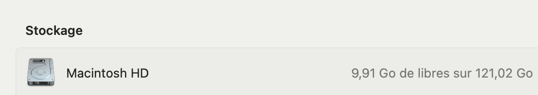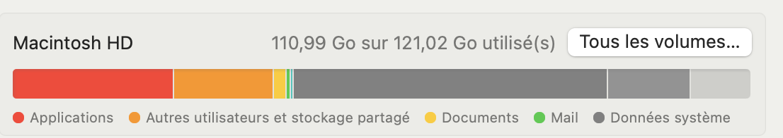 Ce n'est pas un problème de ram mais d'espace de stockageGuillaume008 a écrit :Je pensais plus faire un nouveau sujet" est ce quelqu'un sait comment faire de la place dans la mémoire Mac"
